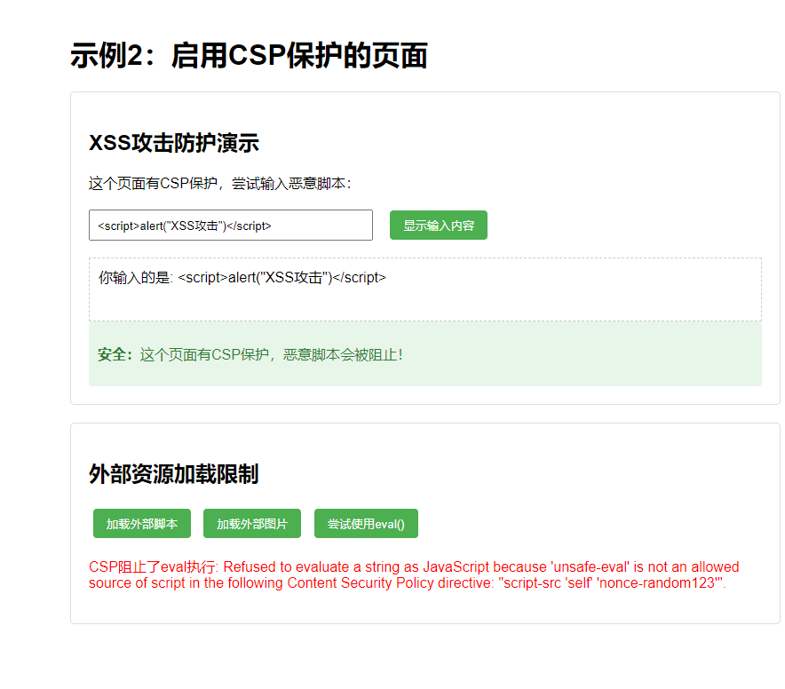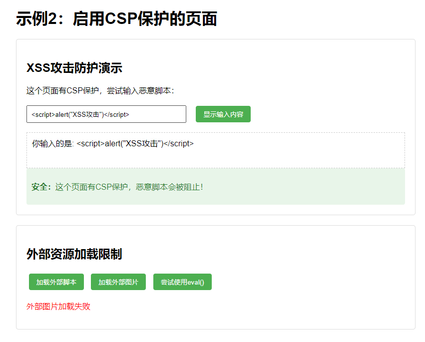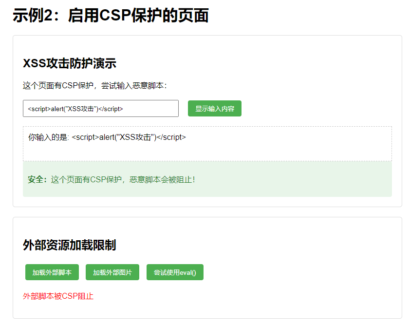示例2:启用严格CSP保护的页面